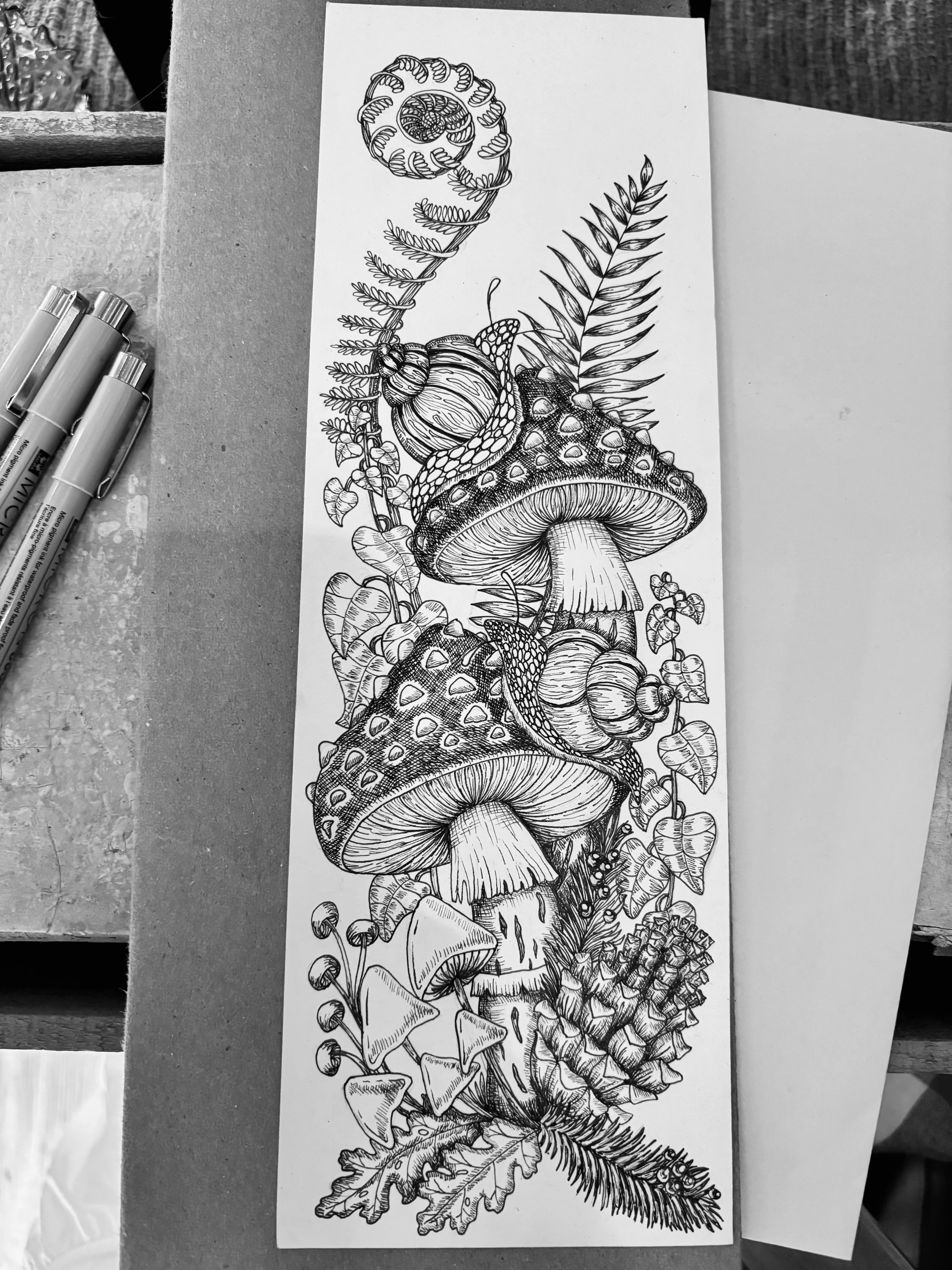 “Tilly’s Tattoo”, fineliner ink on paper, 2025